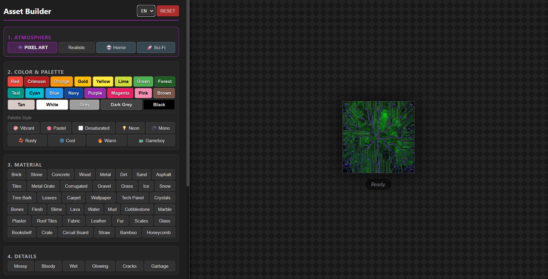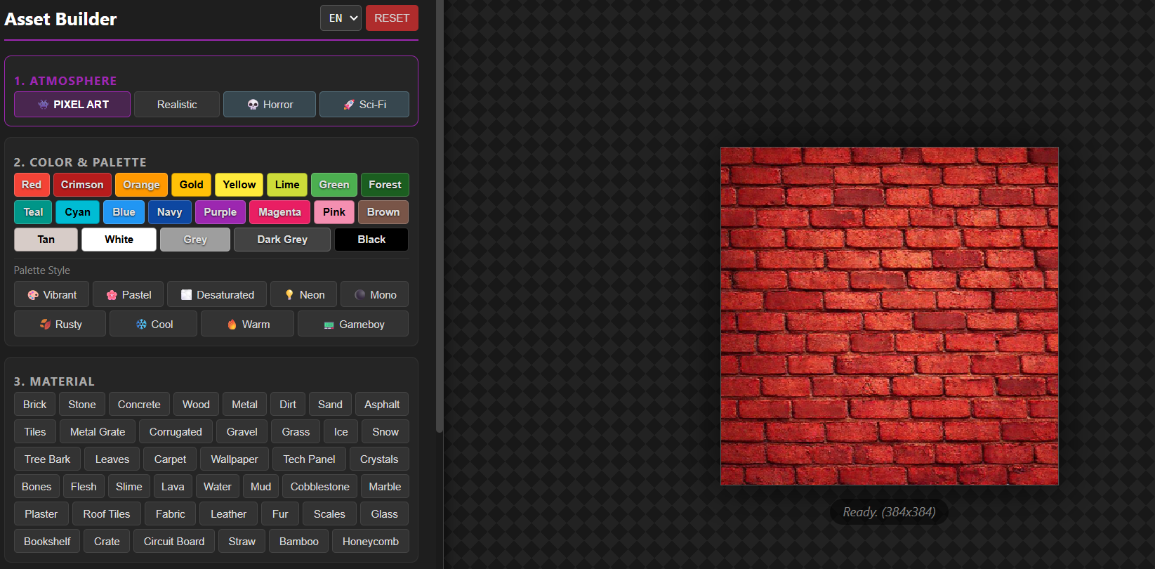 Ať už potřebujete rezavý sci-fi panel, mechem zarostlou kamennou zeď pro fantasy RPG nebo zářivé pixelartové pozadí, tento nástroj ho vygeneruje během několika sekund.